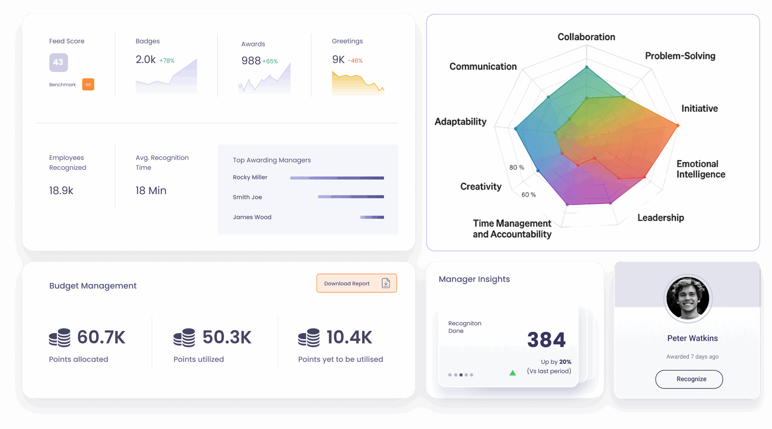 - Recognition Analytics: Data-driven insights on recognition patterns and effectiveness